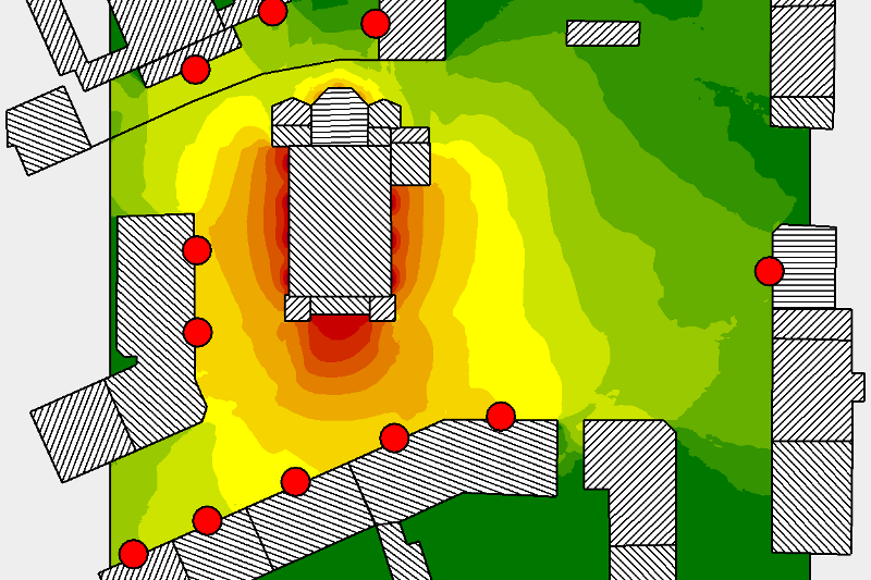 - Dreidimensionale Lärmmodellierung für Bahn-, Industrie- und Gewerbelärm mit CadnaA (Auswertung in Karten, an Empfangspunkten oder über Hausbeurteilungen)